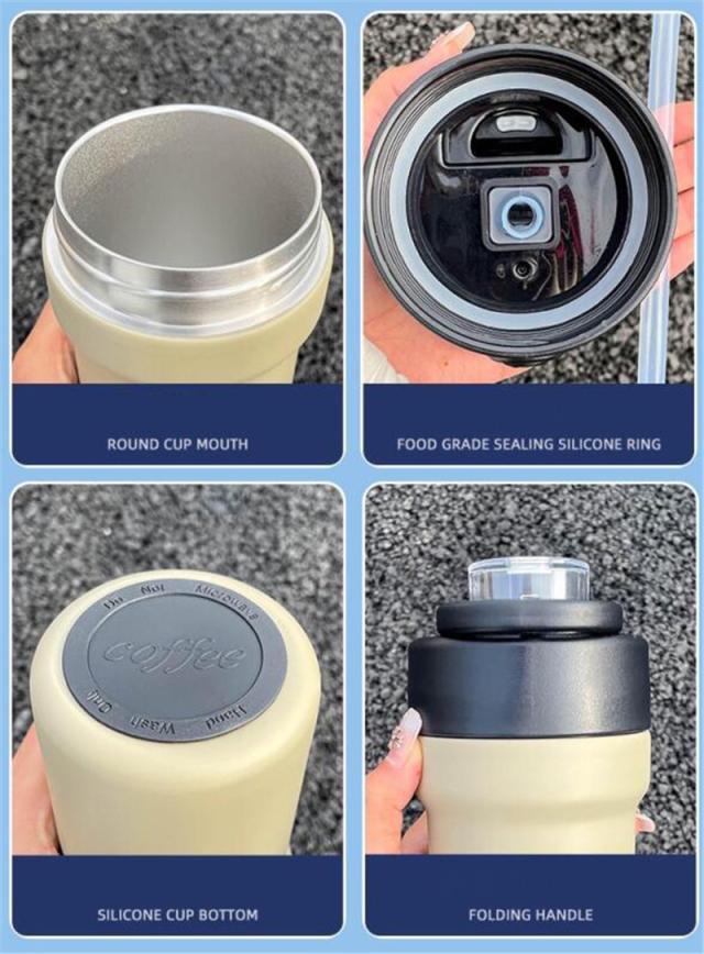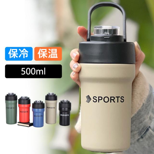 タンブラー 水筒 500ml 大容量 直飲み 真空断熱 保温 保冷 取っ手付き ストロー付き ステンレス コーヒーカップ 二重構造
