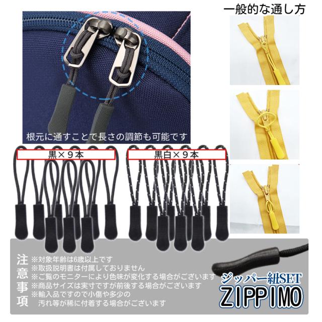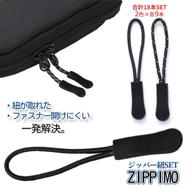 ファスナー 引き手 ジッパータブ 引手 紐 18本セット ジッパープル チャック ジッパー スライダー ジップ 持ち手 ハンドル 交換 補修 修理 取り付け 簡単 シリコン リュック カバン 財布 ポーチ 開閉 1000円 均一 ポッキリ 3-ZIPPIMO 送料無料