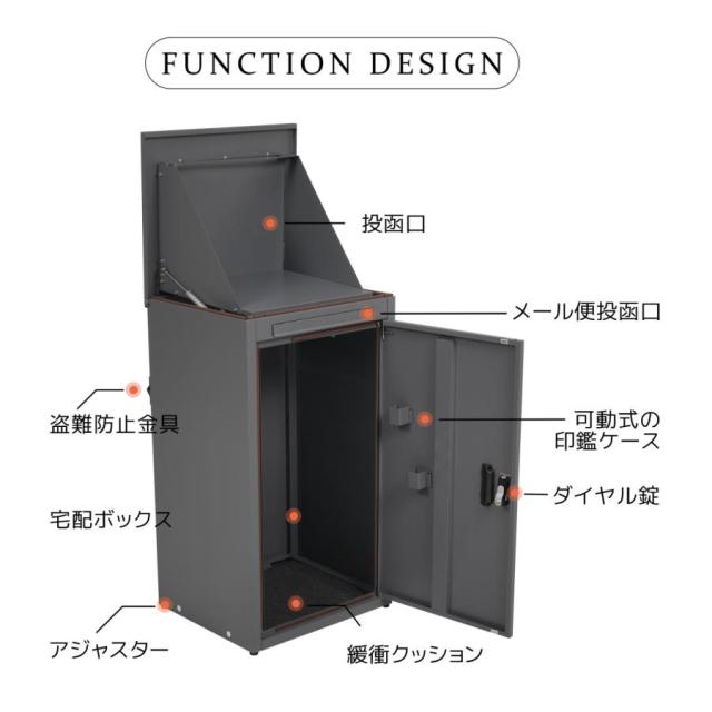 「クーポン配布中」宅配ボックス 据置型 大容量 ポスト一体型 投函口3つ 複数投函 屋外 郵便受け メールボックス 大型 戸建て 一戸建て用 マンション 防滴仕様 ポスト 配達ボックス 置き配 ボックス 組立品 置き配ボックス テレワーク 在宅勤務 おしゃれ
