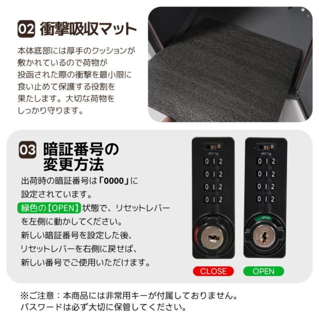 【2025年8月より仕様変更】2025年8月より、完成品から組立品へ仕様を変更いたしました。暗証番号を忘れた場合に使用する復旧用の鍵は付属しておりません。暗証番号はお客様ご自身で設定された番号を忘れないよう、必ずお控えください。