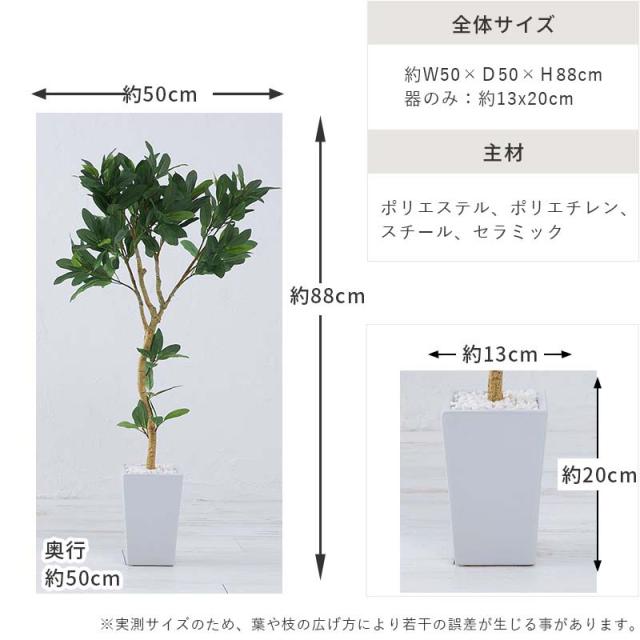| ご注意 | ※ご覧のモニターの環境、撮影環境により実物と色味が異なって見える場合が御座います。 ※水やり不要ですのでご注意ください。 ※本商品には、オリーブの実はついておりません。 ※サイズ、形状、色の濃淡が個々に異なる場合があります。 ※梱包には細心の注意を払っておりますが、万一不自然な形になっている場合には手直しをお願いいたします。 ※茎や花の茎先にスチールピックが付いていることがあります。怪我をしないようお取り扱いにはご注意ください。 ※品質管理に万全を期しておりますが、まれに配送時の動きにより花や葉が落ちてしまうことがあります。繊細な商品のためどうしても避けられません。 取れてしまった場合は市販のボンド・アロンアルファー・グルーガン等で接着が可能です。 ※直射日光・火気・暖房器具の熱の当たる場所はお避け下さい。色あせ等商品劣化の原因となりますのでおすすめできません。 ※ホコリによる汚れは、柔らかい布やハタキなどで取り除いて下さい。色あせ、型くずれ、サビの原因になりますので、水洗いはおすすめできません。 |