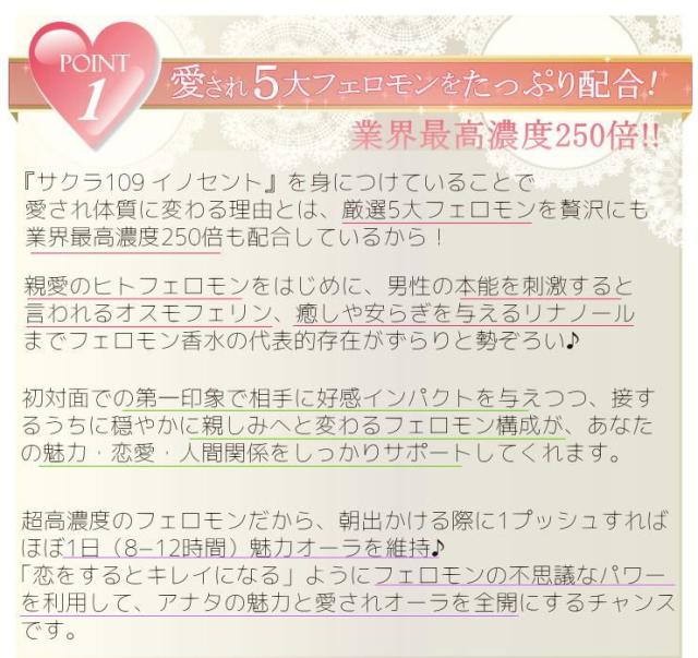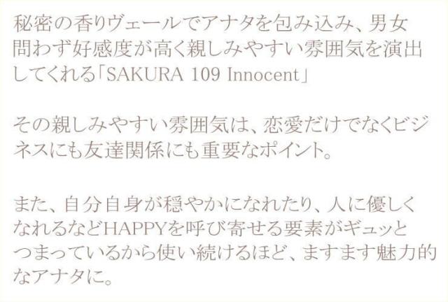 SAKURA 109 Innocent サクラ109 イノセント フェロモン香水 無香料 バレない モテる 魅力アップ 引き寄せ 女性用 人気 婚活 オススメ