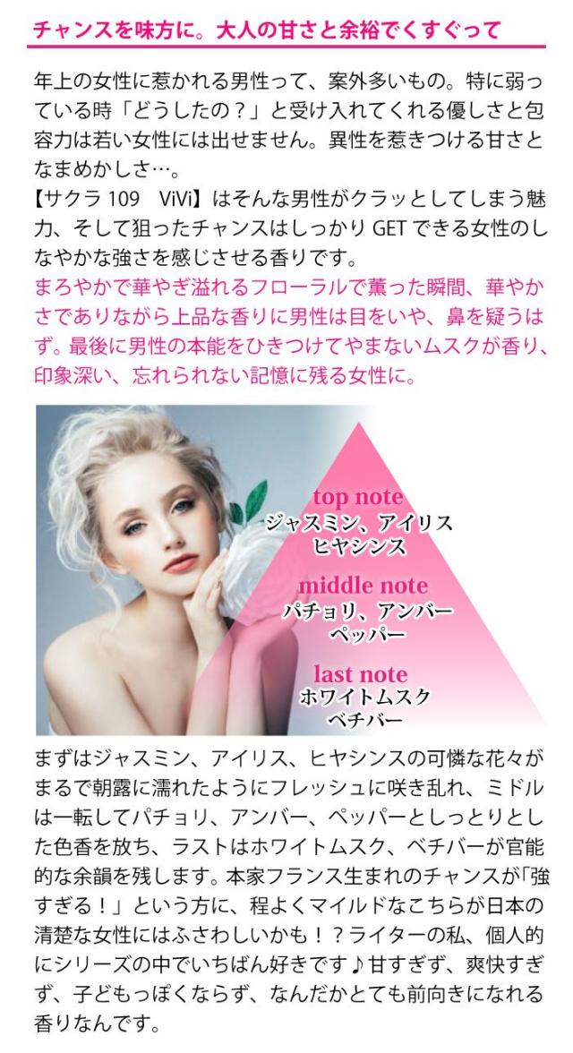 SAKURA 109 Vivi サクラ 109 ビィビィ フェロモン香水 香り有り バレない モテる 魅力アップ 引き寄せ 女性用 人気 婚活 オススメ