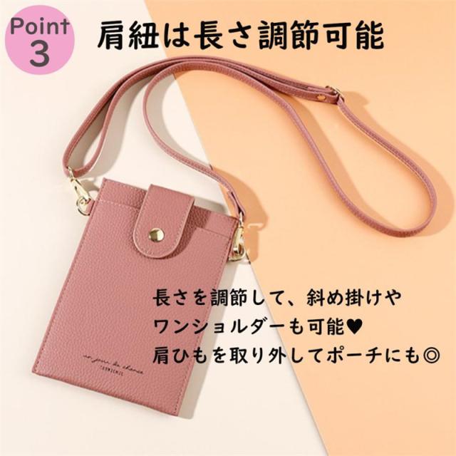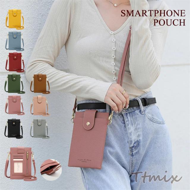 スマホポーチ レディース スマホショルダー ポシェット お財布ポシェットミニショルダー スマホポシェット ショルダーバッグ 縦型 シンプル 薄型 軽量 定期入れ ICカード 携帯入れ 財布 ショルダー パスケース 斜めがけ 肩掛けカバン