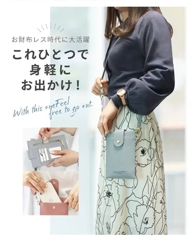 ●スマホ、ミニ財布、鍵等最低限の荷物での外出にピッタリなスマホポーチ。