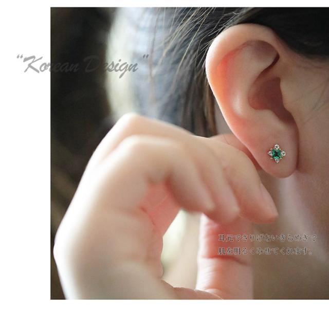 ピアス レディース 18金 仕上げ 花 小さめ エメラルド スワロフスキー ジルコニア採用 アレルギー対応 ポイント消化 大人 可愛い