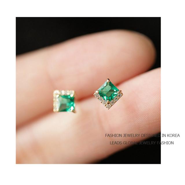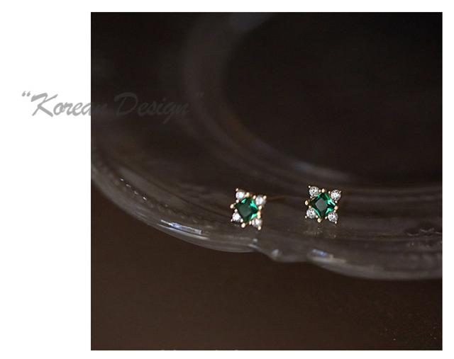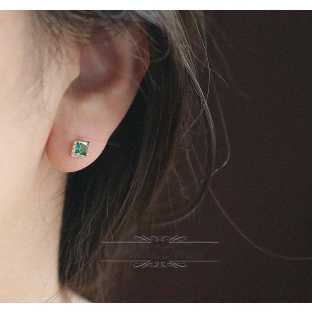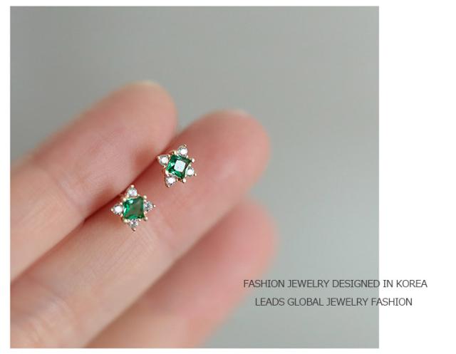 小さめのサイズ感が可愛らしい、エメラルドミニピアスです。