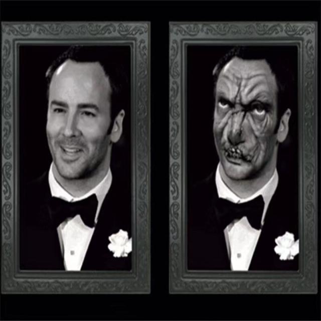 蝶ネクタイをした紳士の絵画が見る角度によってスカルやゾンビのように見える不気味な壁掛けインテリアグッズ。