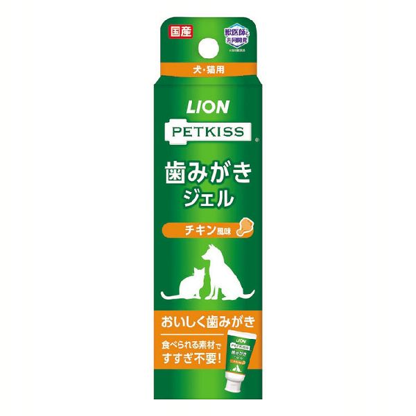 PETKISS 歯みがきジェル チキン風味 40g LION 歯みがきジェル 歯みがき ジェル ブレスケア オーラルケア デンタルケア 歯垢 口臭 国産 チキン 犬 猫 ネコ ペットキッス ライオン