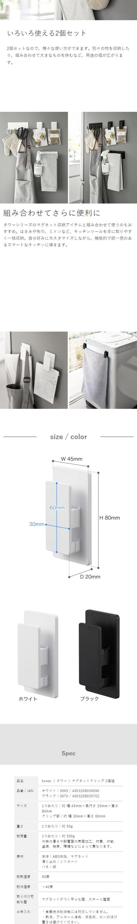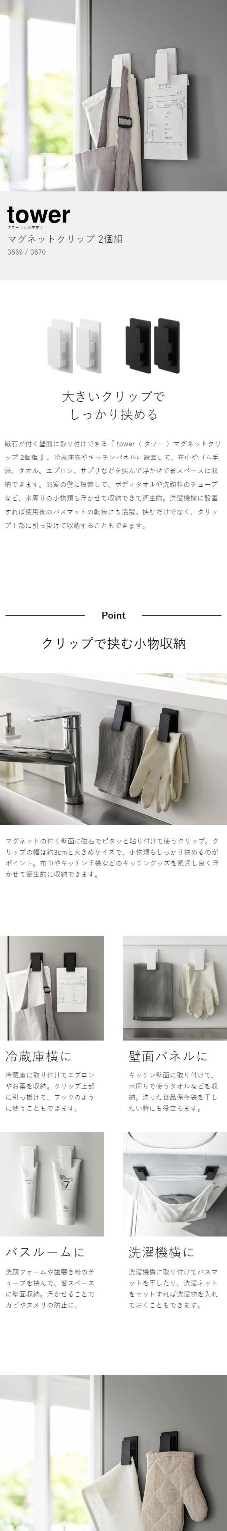 [ マグネットクリップ タワー 2個組 ]山崎実業 tower キッチン タオル クリップ 磁石 冷蔵庫 2個セット 布巾ハンガー フック バスルーム 洗濯機 壁面収納 シンプル 北欧 おしゃれ モノトーン yamazaki ブラック ホワイト 3669 3670