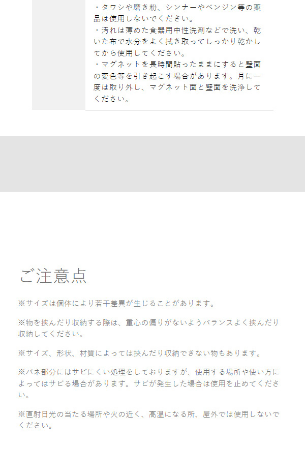 冷蔵庫横やキッチンパネルに磁石で設置して、布巾やゴム手袋、タオルなどを挟んで省スペースに収納できます。浴室の壁でボディタオルや洗顔料のチューブなども浮かせて収納できて衛生的。