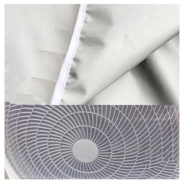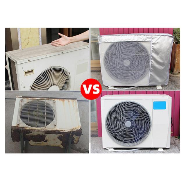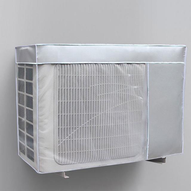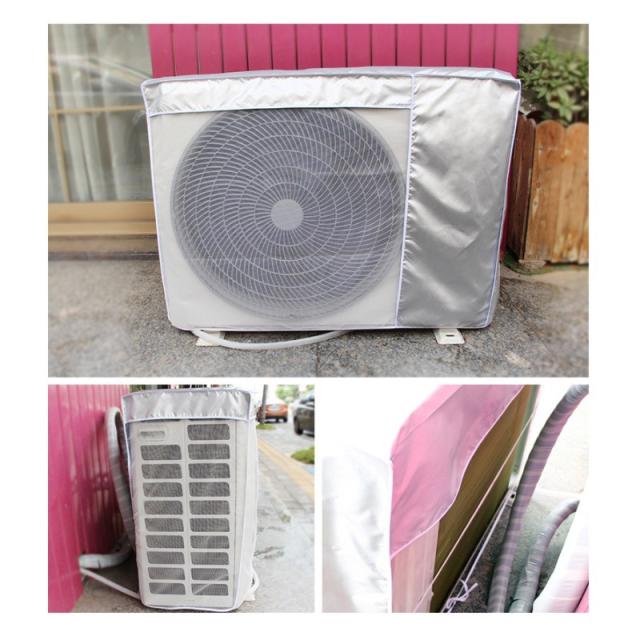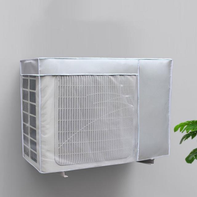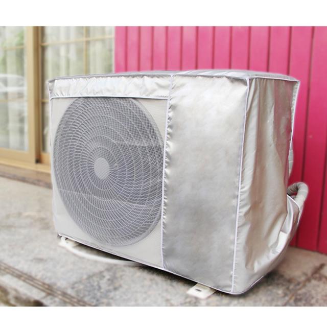 - 交通量の多い道路に面してる為、気づくと天面に黒いタイヤカスの様な汚れが溜まります。すっぽりと被せて後ろで紐で縛るだけなので簡単です。吹き出し口のメッシュも室外機のサイズに合っていて邪魔することは無いです。