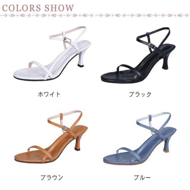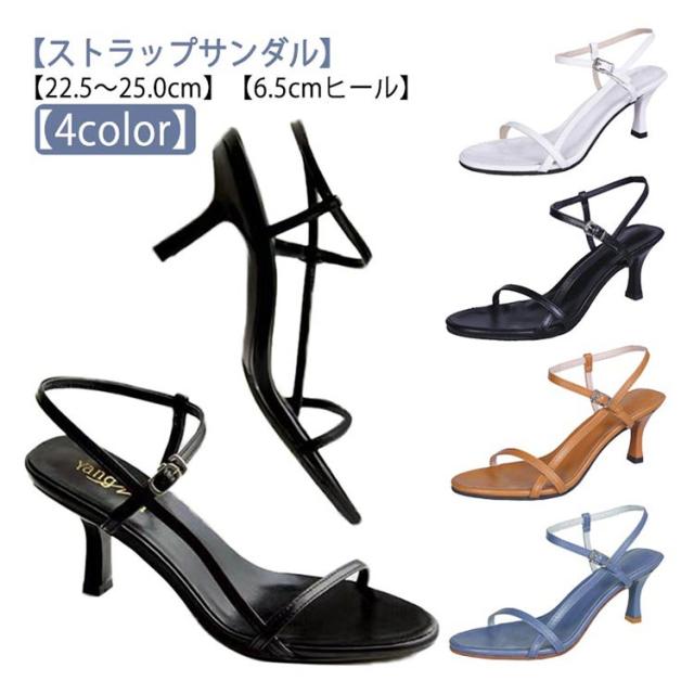 ナローストラップ おしゃれ ブラック 6.5cm サンダル クロス ストラップ ヒール ストラップサンダル ピンヒール 歩きやすい オフィス きれいめ アンクルストラップ 夏 シンプル ホワイト ブラウン ブルー 22.5-25.0cm 黒 白 リゾート 旅行 レディース