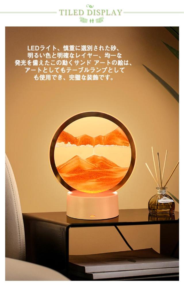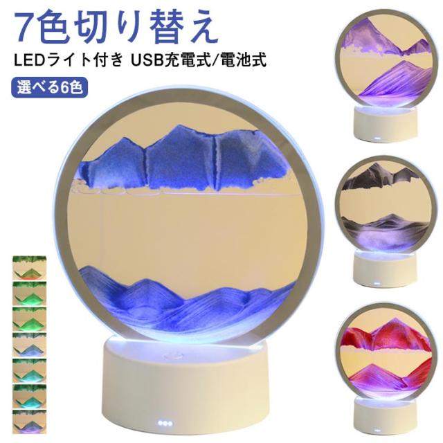 ナイトライト サンドピクチャー 砂の絵 サンドアートピクチャー サンドアート 7色切り替え 砂絵時計 動く砂のアート絵 LEDライト付き 3D 置物 USB充電式/電池式 流砂絵 LED オフィス インテリア LED 丸 雑貨 砂絵 癒し おしゃれ プレゼント 流れる