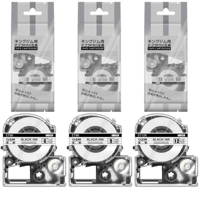 互換 キングジム テプラ テープ (透明地黒文字, 6/ 9/12mm)