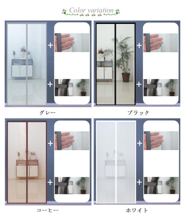 | 全20サイズ!マグネットタイプで自然に閉じる網戸カーテン 玄関や勝手口などに取り付けて虫除けや風通しに便利なアイテム! 強力な磁石により、素早く自動で閉まるので、荷物で両手がふさがっている時でも便利なマグネットカーテンです。大人と幼児ちゃん、ワンちゃん、猫ちゃんもスムーズに通過できます。 極細タイプの網の方が虫が取りぬけられません。米より小さい綱目、しっかり虫をブロックしてくれます。 虫を防ぎながら新鮮な空気が入ることを可能です。外の風景が見やすいように空間率を大きくしています。空気の流通にも邪魔しません。 まわり全てマジックテープ式です、カーテンが丈夫に固定されます。貼り付け式タイプなので取付も簡単! 使わない季節には取り外し、洗浄して折りたたんでコンパクトに収納できます。 ご購入の前に設置予定箇所のサイズを確認し、本製品が適合するかをお確かめください。 取付方法:1.ドア枠を綺麗にして、乾燥するまでは数分間お待ちください。 2.床の上に網戸を平らに置きます。 3.付属の面ファスナーを網戸の上と!側面に沿ってくっつけます。 4.粘着テープのはくり紙を剥がします。 5.適切な位置に合わせて、網戸をドアフレームに貼り付けます。 | |