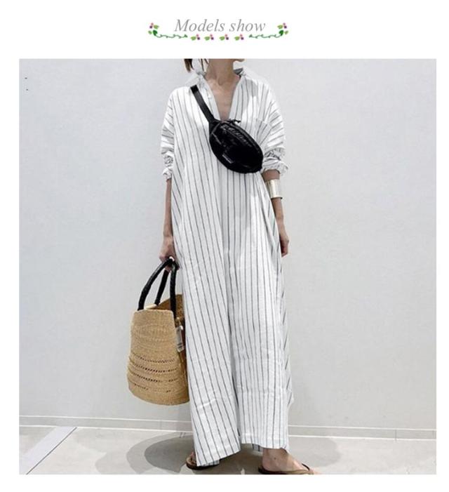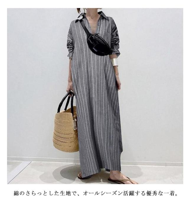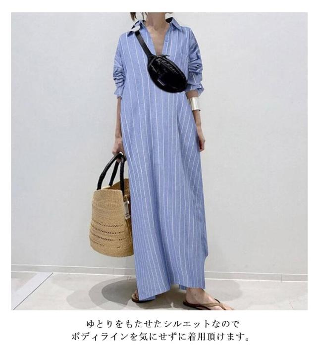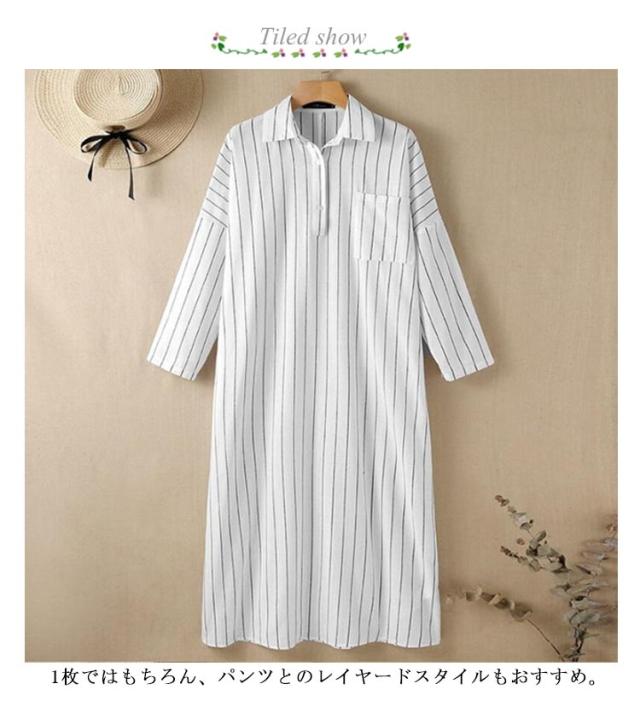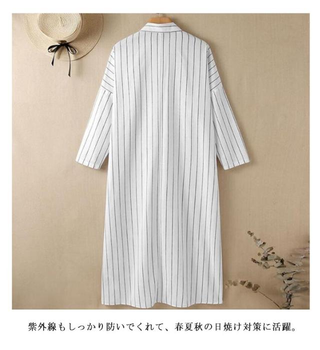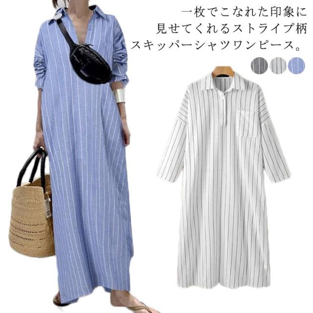 ロングシャツワンピース シャツワンピース 綿 スキッパー シャツワンピ 長袖 ゆったり ロング コットン 白シャツ ワンピース レディース ストライプ柄 夏 大きいサイズ 春 夏 秋 紫外線対策 UVカット 体型カバー きれいめ 大人 マキシ丈