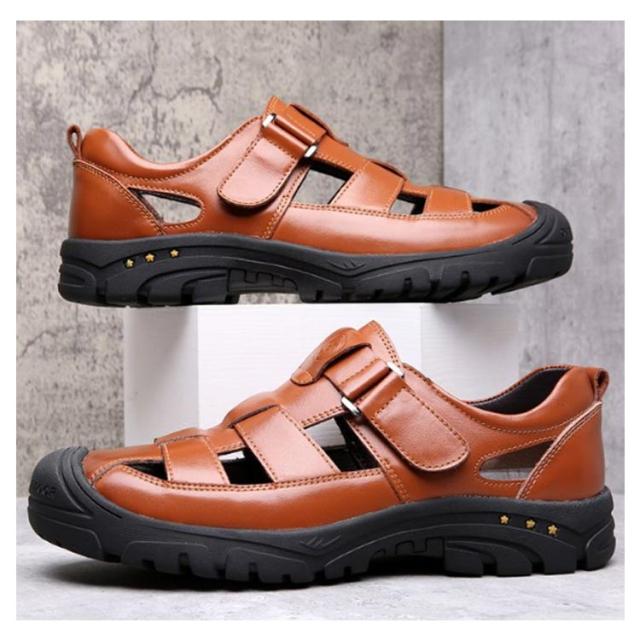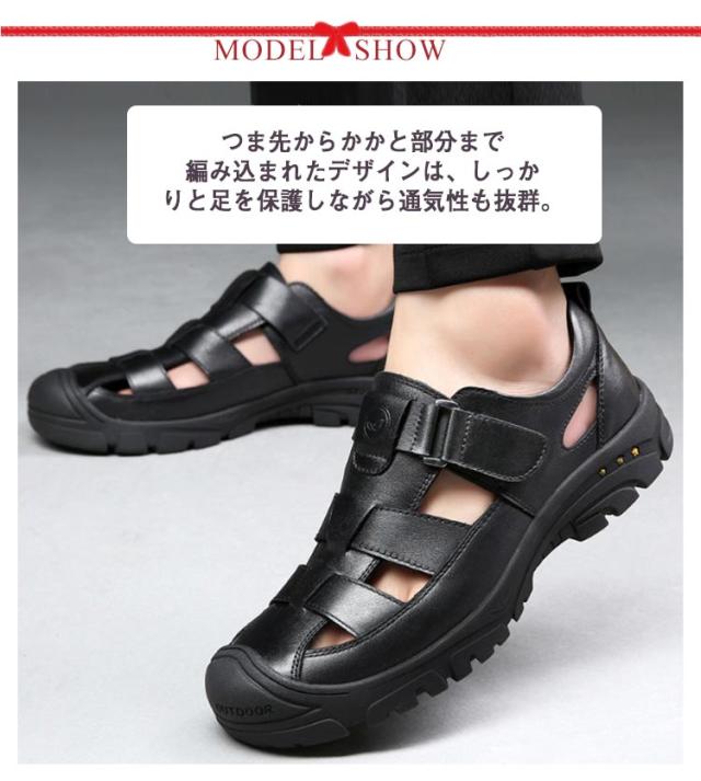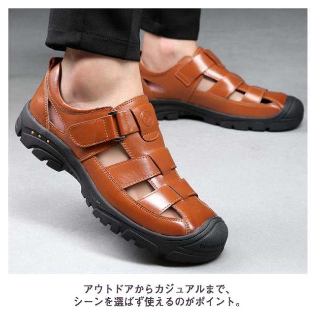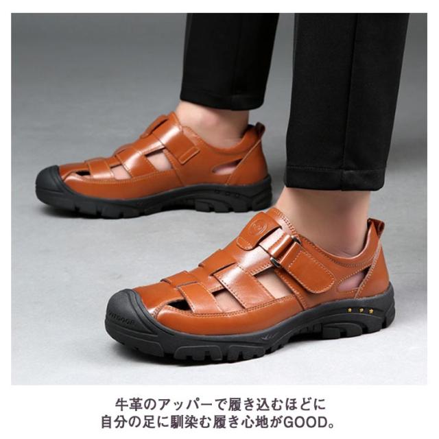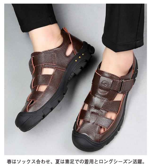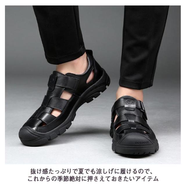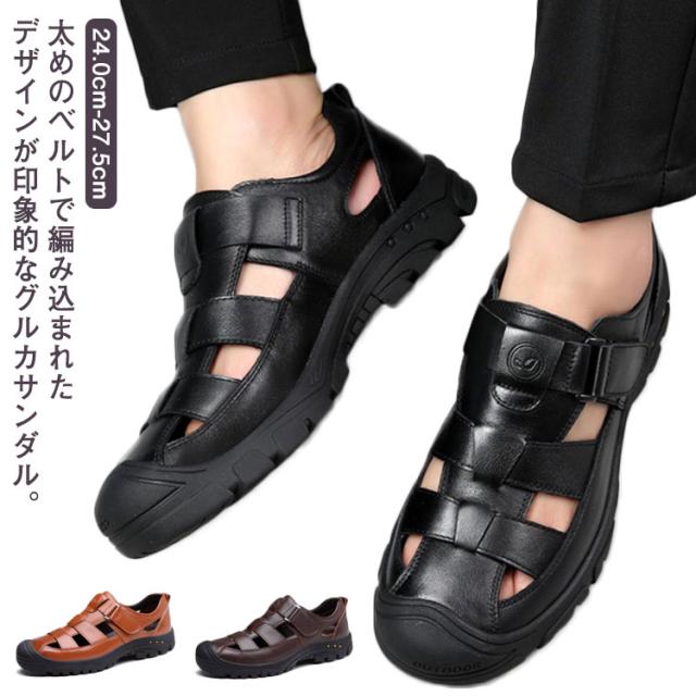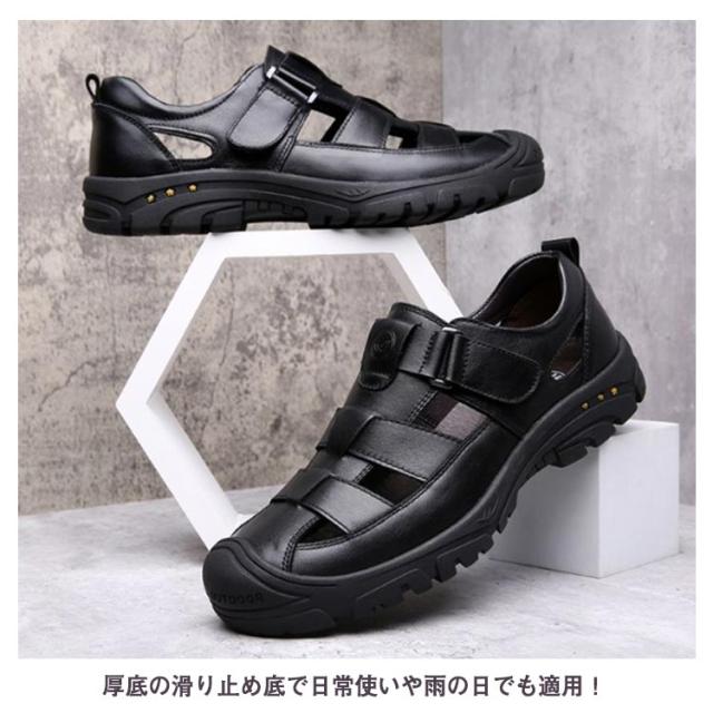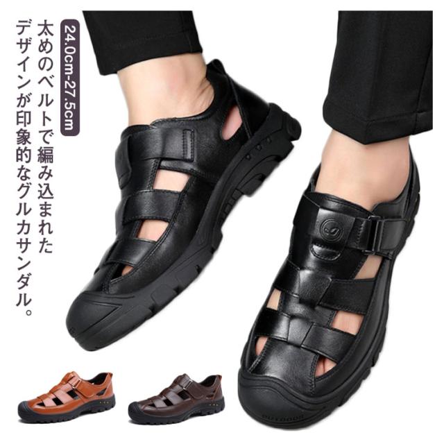 本革 サンダル グルカサンダル 革靴 走れる 夏 カジュアルシューズ メンズ 滑りにくい 通気性 メンズ靴 厚底 歩きやすい スポーツサンダル アウトドア 防滑 蒸れない 疲れない 甲高 柔らかい 黒 カジュアル カメサンダル
