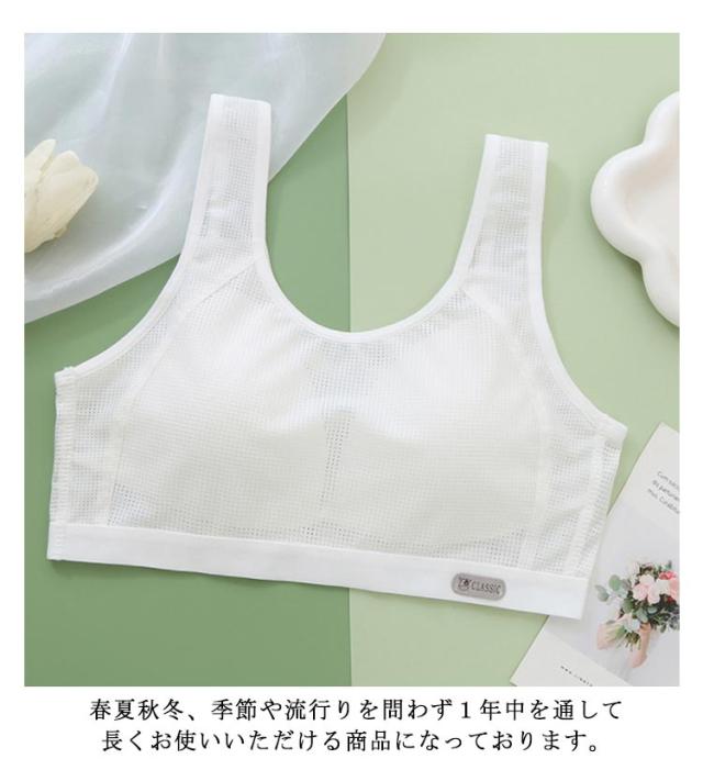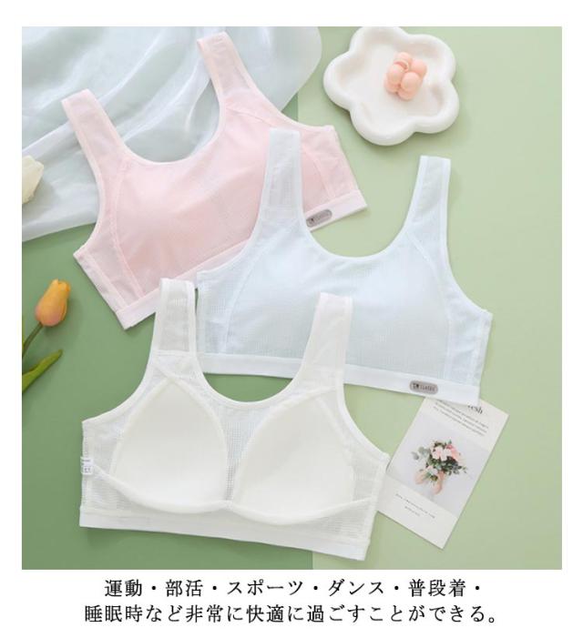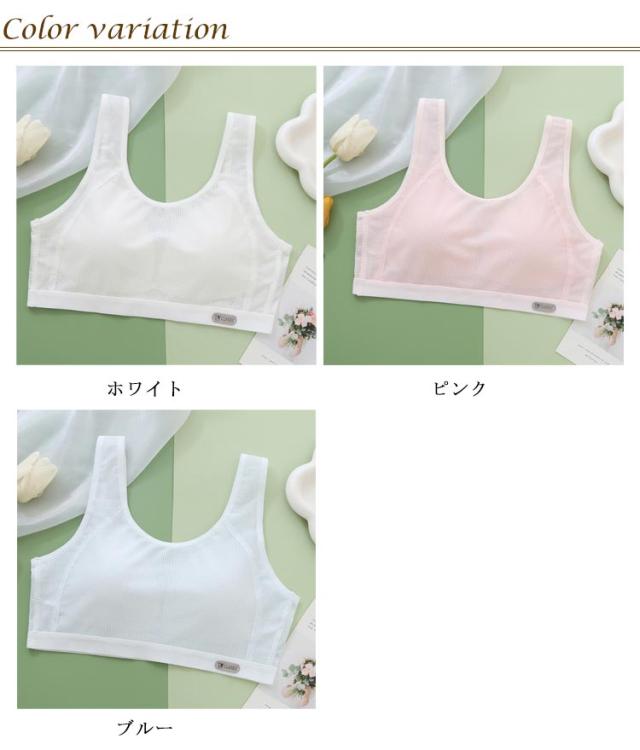 ジュニアブラ ノンワイヤー ハーフトップ ブラジャー スポーツブラ スポブラ 中学生 高校生 下着 インナー ガールズ 通気性抜群 小学生 ジュニア 部活 キッズ カップ付き 女の子 コットン メッシュ 揺れない 女子 体操 ファーストブラ 体育 M L ジュニア