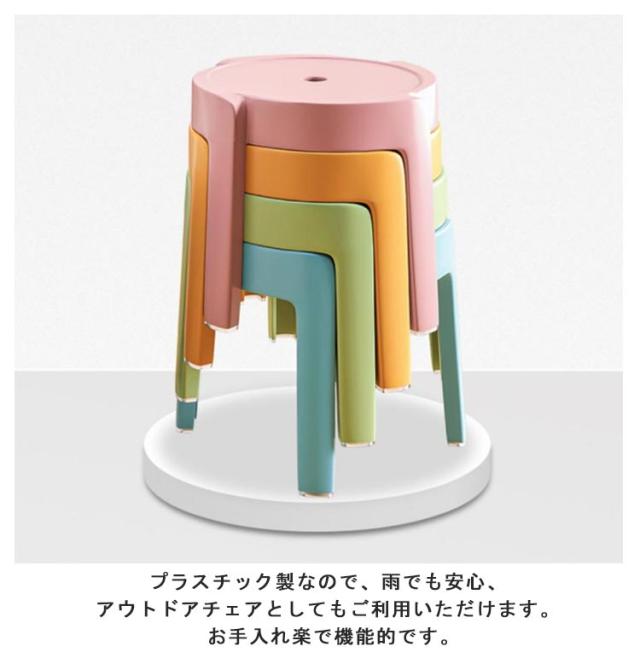 | カラフルなスタッキングチェア4個セット。 スタッキング(積み重ね)可能で、数脚あっても省スペースに収納できます。 プラスチック製なので、雨でも安心、アウトドアチェアとしてもご利用いただけます。 お手入れ楽で機能的です。 PP素材 で軽量なため、女性やお子さまでも重ねた状態でラクラク運べます。中央に穴があり、指が入るので持ち運びも簡単です。 完成品出荷なのでインストールの手順も不要で、荷物を開けて取り出して使うことができるので、手間も省けます。 4つの脚はしっかりと着地し、バランスよく力を受けます。重量を軽く受け止め、崩れもしません。 リビングやキッチンだけでなく突然の来客用やちょっとした作業の腰掛けに、玄関椅子としても使えます。 ご自宅や店舗、屋台やイベント等、様々な用途で活躍します。 | |