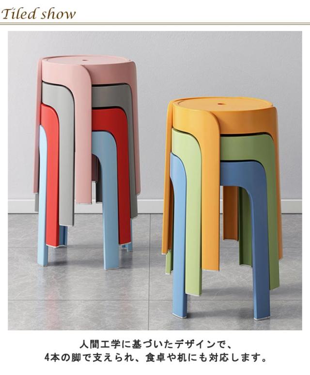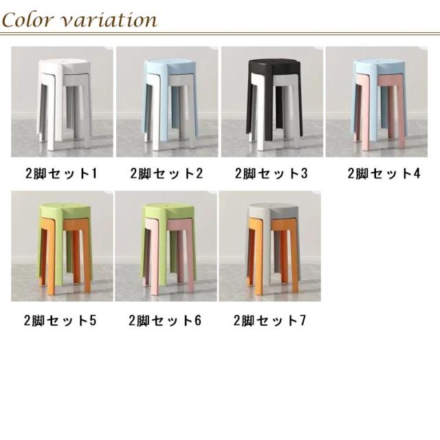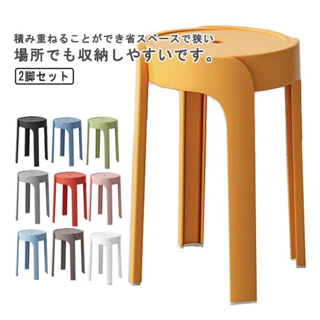 厚手PP 寝室 椅子 子ども部屋 2脚セット スツール いす インテリア イス 北欧 ラウンドスツール シンプル 家具 プラスチック 省スペース バスルーム 台所 カラフル スタッキングチェア