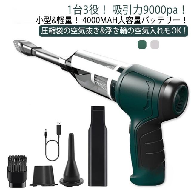 ミニ掃除機 一人暮らし 吸引力 9000pa コードレス掃除機 ミニ掃除機 車用掃除機 コンパクト ハンディー掃除機 強力 小型 1台3役 多機能 ハンドクリーナー ハンディ掃除機 USB充電式 車載掃除機 軽量 ペットの毛 車 掃除機 髪の毛 カー ハンディクリーナー