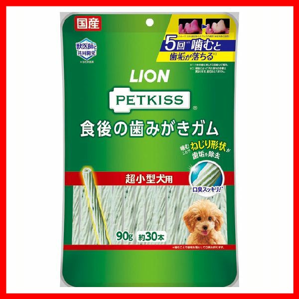 PETKISS 食後の歯みがきガム 超小型犬用 90g(約30本) LION 歯みがきガム 歯みがき ガム おやつ オーラルケア デンタルケア 歯垢 口臭 超小型犬 90g 犬 イヌ ペットキッス ライオン 送料無料