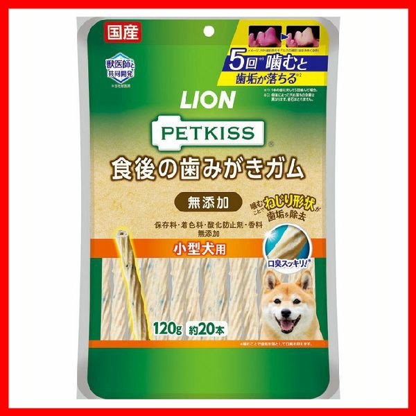 PETKISS 食後の歯みがきガム 無添加 小型犬用 120g(約20本) LION 歯みがきガム 歯みがき ガム おやつ オーラルケア デンタルケア 歯垢 口臭 無添加 120g 犬 イヌ ペットキッス ライオン 送料無料