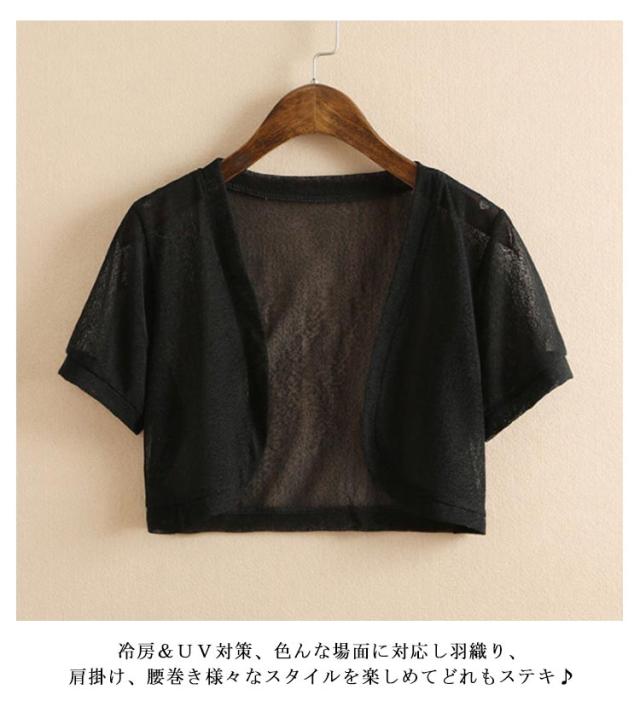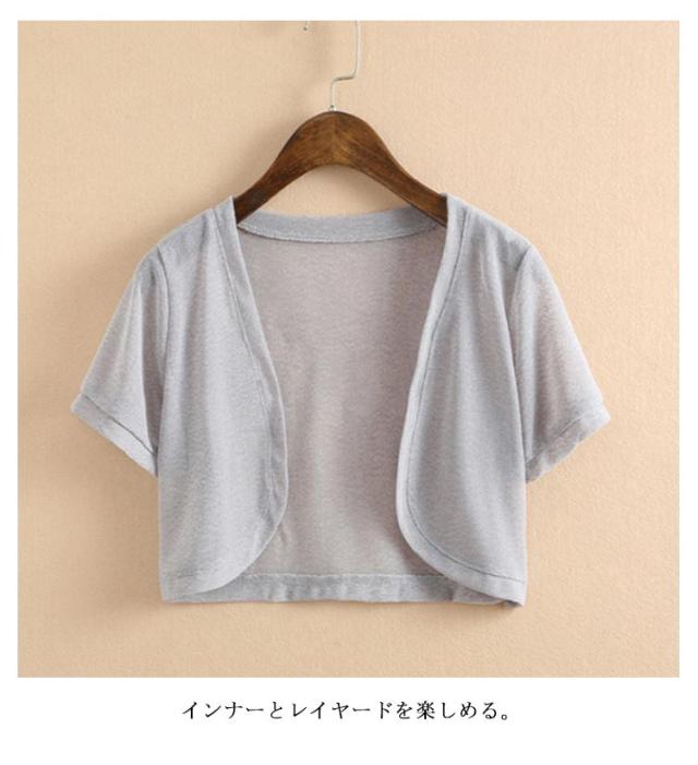 接触冷感 カーディガン レディース ボレロ 半袖カーディガン シアー カーディガン サマーカーディガン カーディガン ショート丈 薄手 半袖 uvカット 日焼け対策 春 夏 透け感 サマーカーディガン サマーニット Vネック 薄手 透け感 ショート丈 夏用