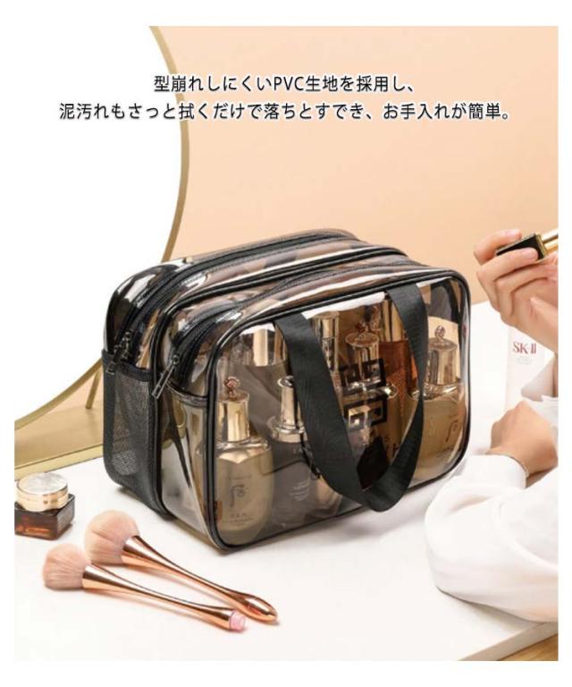 | 化粧品・トイレタリー・小物を一緒に収納できる大容量なメイクポーチです! クリアな外見で中身は簡単に識別し、置き取りも便利、化粧品をちゃんと整理できる。 軽くて耐久性が高い防水素材を採用し、軽量で持ち運び便利です。 お家での普段使い、出勤、出張、旅行先へのバッグインバッグにもピッタリ! 型崩れしにくいPVC生地を採用し、泥汚れもさっと拭くだけで落ちとすでき、お手入れが簡単。 | |