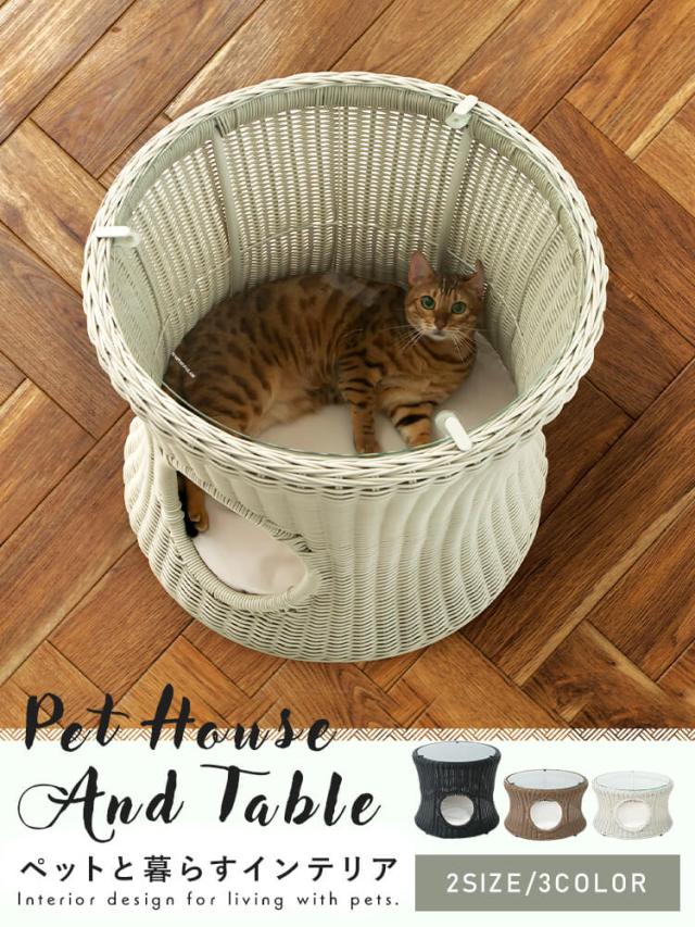 ペットハウス&テーブル 丸型(小) 全3色 ペットベッド ペットハウス テーブル ローテーブル サイドテーブル インテリアテーブル ラタン風 ベッド おしゃれ シンプル 完成品 犬 猫 ネコ ペット 送料無料