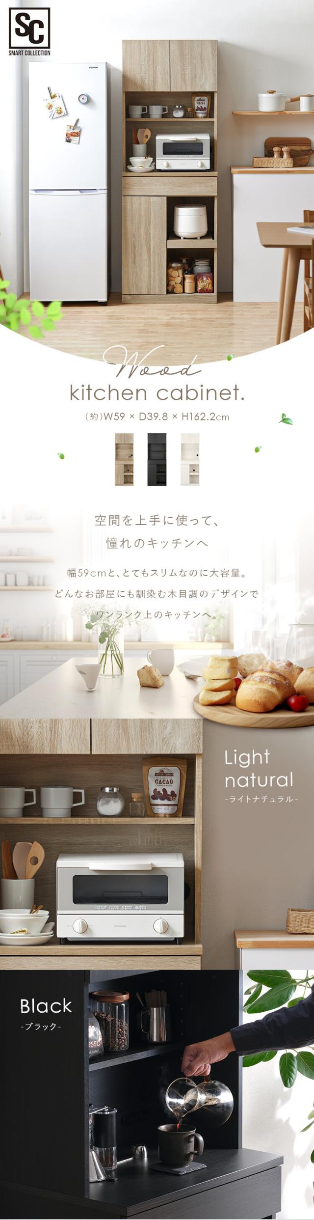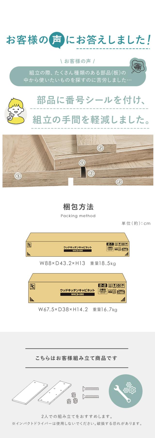 食器棚 キッチンラック ウッドキッチンキャビネット WKCB-590 ダイニングボード キャビネット 木目調 キッチン家具 インテリア おしゃれ レンジ台 組立動画 送料無料 [int]