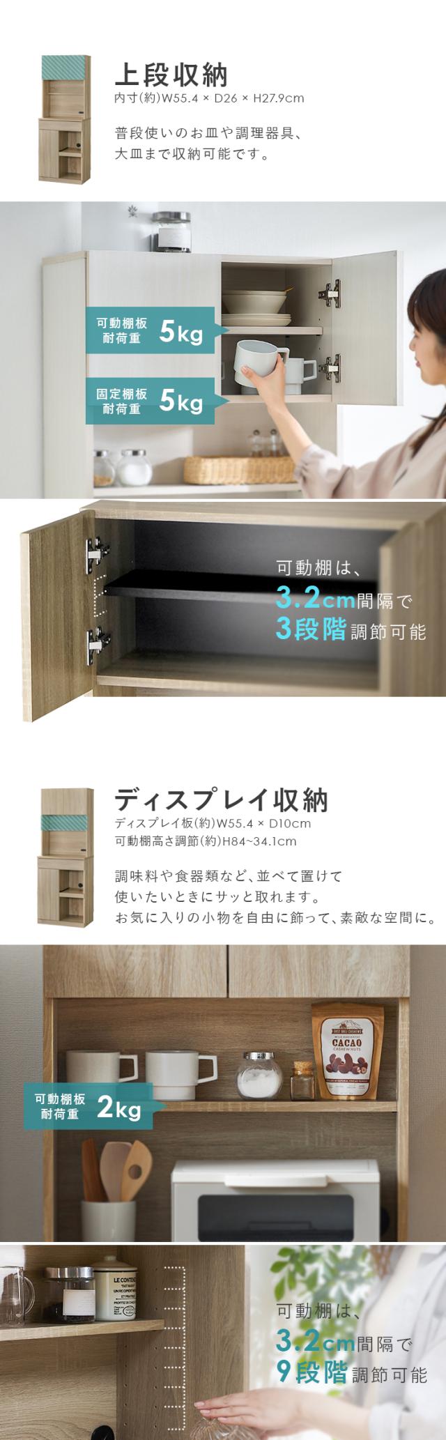 ディスプレイ収納可動棚板:2kg、天板:20kg