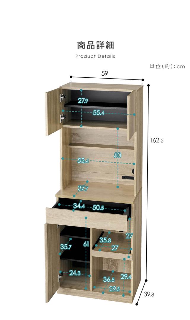 全体:幅約59×奥行約39.8×高さ約162.2