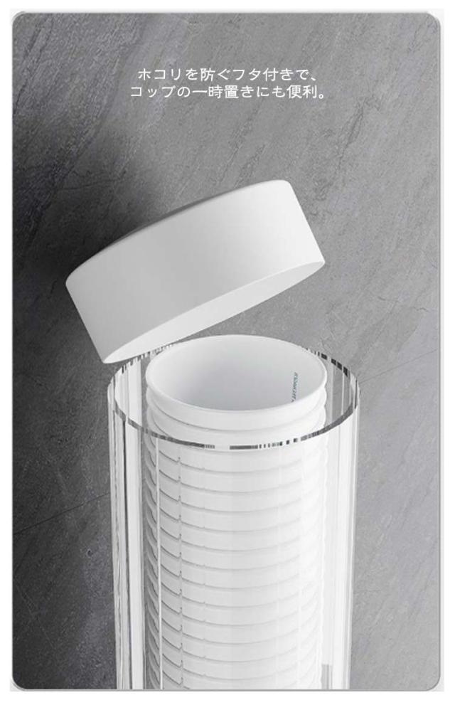 | 機能的なデザインのカップディスペンサー 粘着テープで取り付けるカップディスペンサー ホコリを防ぐフタ付きで、コップの一時置きにも便利。 中身が見えるから補充のタイミングを逃さない インテリアの雰囲気を邪魔しない上品なデザイン | |