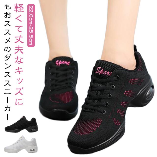 | 軽くて丈夫なキッズにもおススメのダンススニーカー 着地時の衝撃を緩和し、足を保護し疲労を軽減するエアクッション。 ダンススニーカーならではの爪先立ちがしやすいスクエアトゥ。 足にフィットしやすくターンがしやすいアーチ構造。脚長に見えるデザインです。 通気性を高めたメッシュ素材。ムレにくいスニーカーです。 やや厚めのライナーとインソールは適度な履き心地。インソールは取り外せるので陰干しができ衛生的です。 太めのシューレースはほどけにくく、しっかりと結べます。見た目にもGOOD。 | |