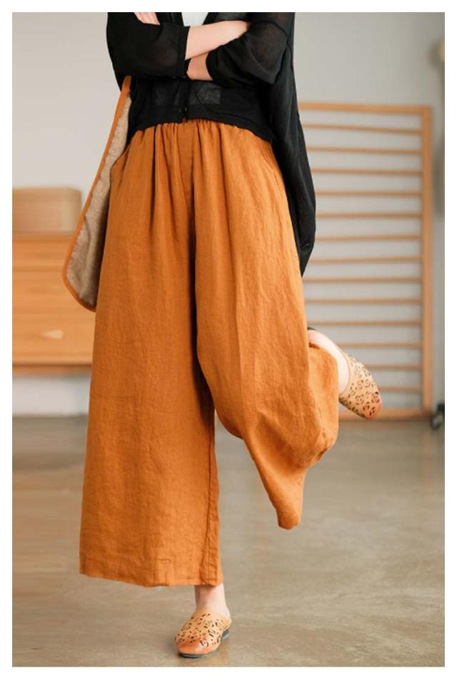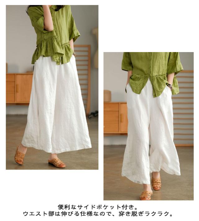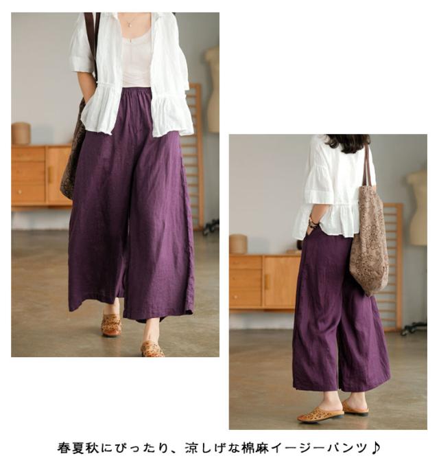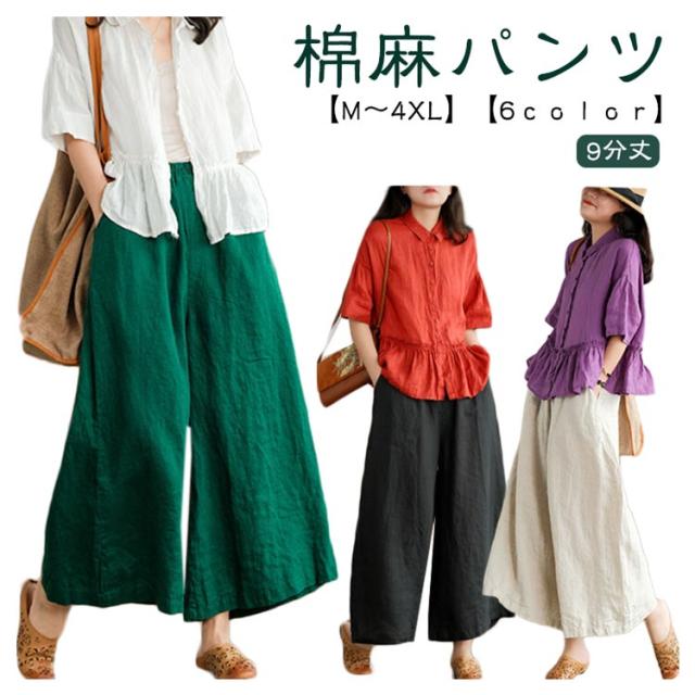夏 リネン リネン ボトムス レディース ナチュラル きれいめ 9分丈 棉麻パンツ ワイド パンツ 春 秋 イージーパンツ ゆったり カジュアル 大きいサイズ ウエストゴム ウエストゴム 無地 体型カバー 涼しい おしゃれ ポケット ワイドパンツ