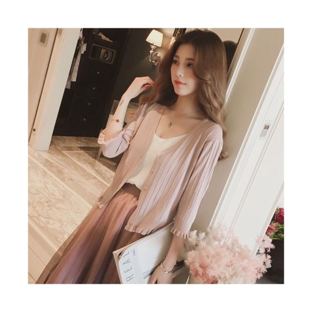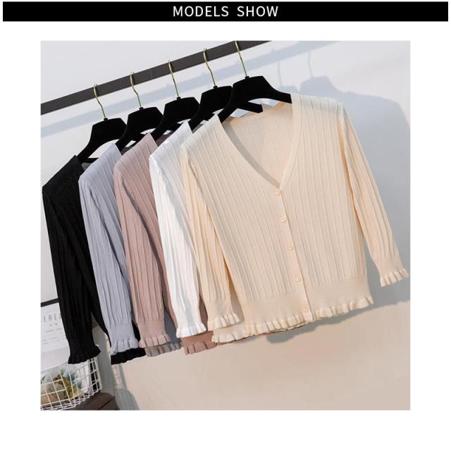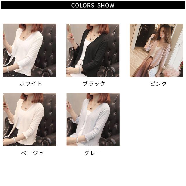 カーディガン 夏 フリルカーディ フリルカーディガン 春 秋 ニットカーディ レディース ニットカーディガン 無地 サマーカーディ 羽織り ショート丈 シンプル 七分袖 フリル 可愛い 送料無料 ショートカーディガン