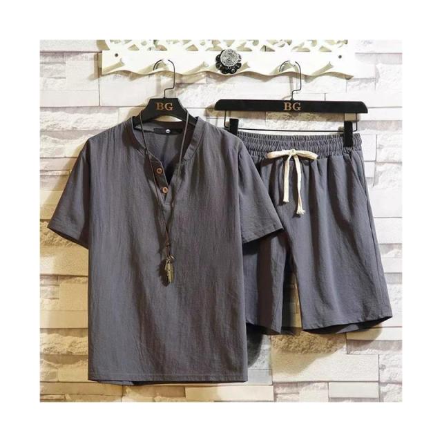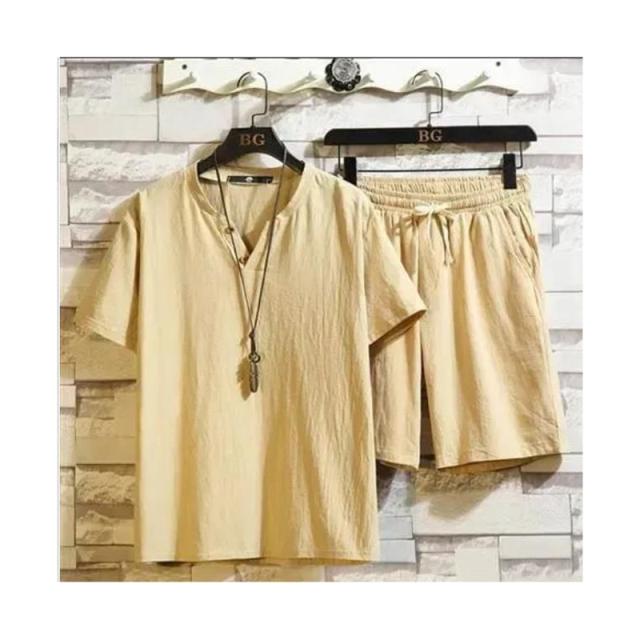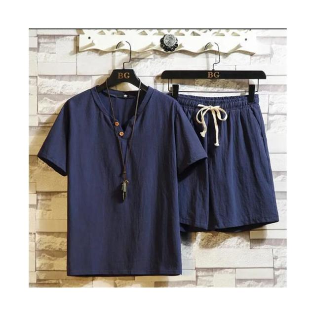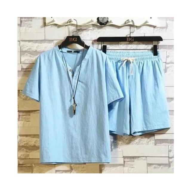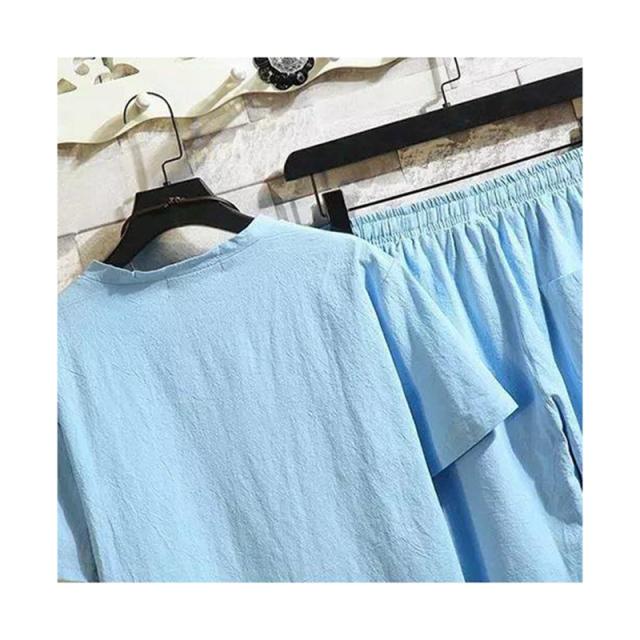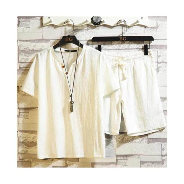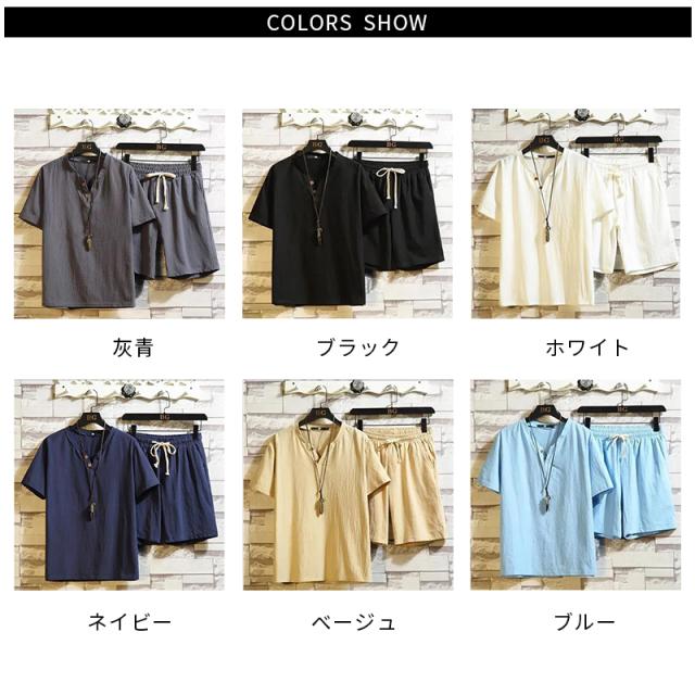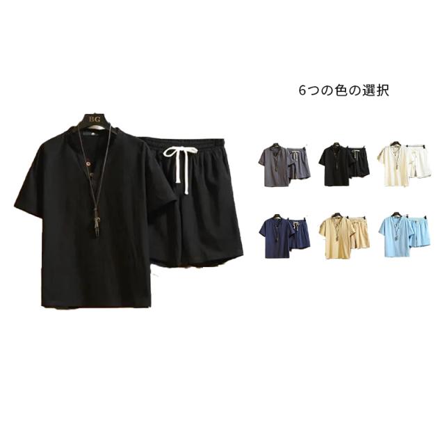 ウエスト紐 ブラウス+パンツ ゆったり メンズ 半袖ブラウス カジュアル ハーフパンツ 二点セット リネン リネン 春夏 カジュアルパンツセット 大きサイズ 無地 シンプル アウター 涼しい シャツブラウス 送料無料 セットアップ