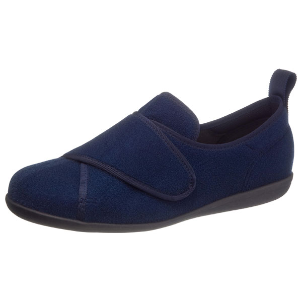 大型の面ファスナーで、インソールの有無と面ファスナーのとめ方により、足幅が「4E〜7E」まで調整可能です。