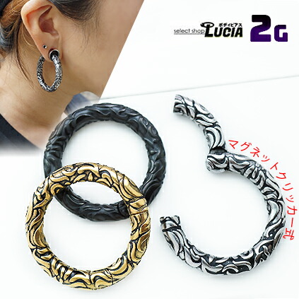 本日P2倍 2G ピアス ボディピアス デザイン彫り メンズ ワンタッチピアス カラー クリッカーセグメントリング 金属アレルギー 大きい プラグ かっこいい