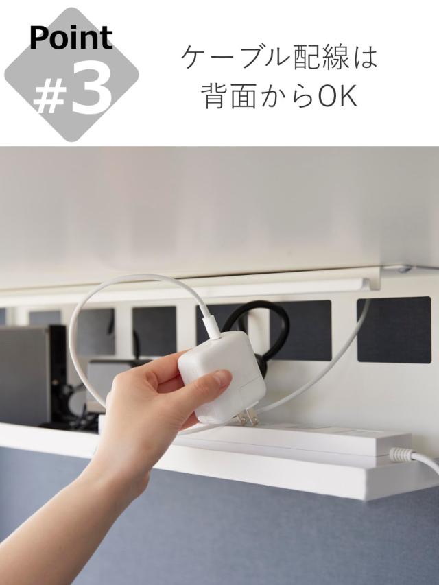 背面にコードを通す枠が空いているので、表からは見えず、コードが絡まることなく収納できる設計です。