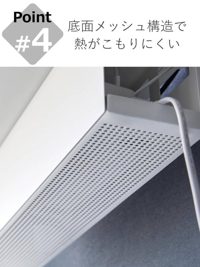 底面がメッシュ構造になっているので、電源タップやアダプターの熱がこもりにくい仕様です。
