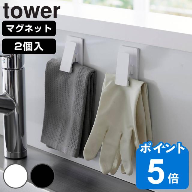 山崎実業 tower マグネットクリップ タワー2個組 ( 4903208036696 タワーシリーズ マグネット クリップ フック ふきん掛け メモ タオル 浮かせる収納 壁面 冷蔵庫 キッチンパネル 洗面台 洗面所 サニタリー キッチン 台所 ホワイト )