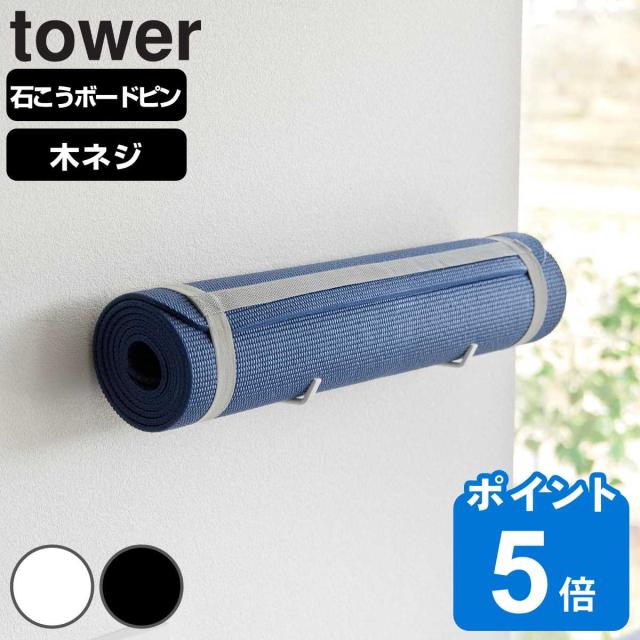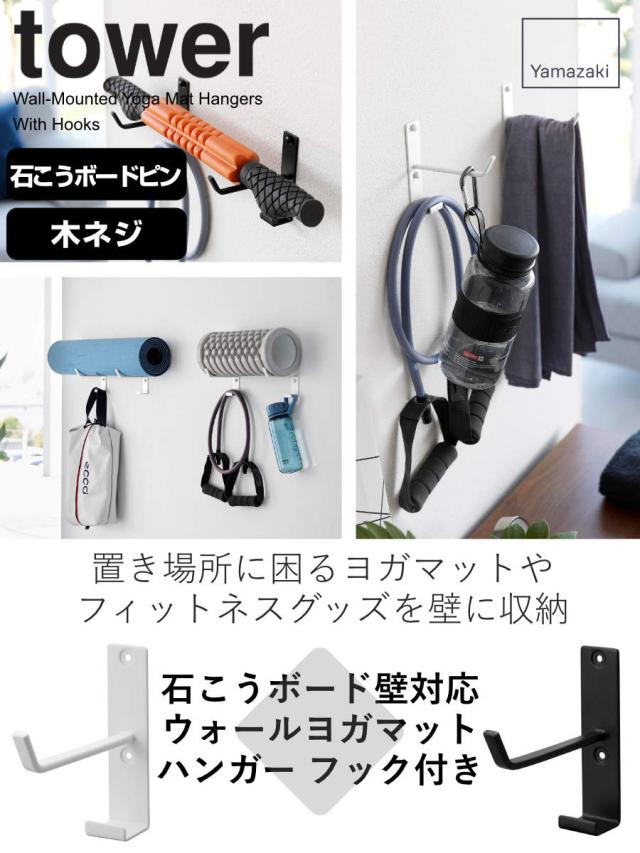 tower 山崎実業 石こうボード壁対応ウォールヨガマットハンガー フック付き タワー ( タワーシリーズ 石膏ボード ピン 壁掛け 収納 フック 壁面 ヨガマット フィットネス トレーニング )