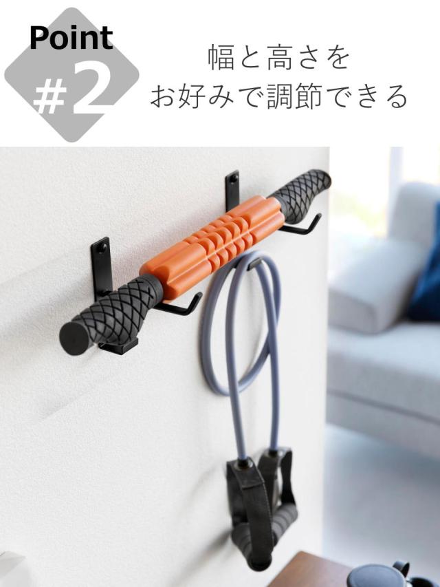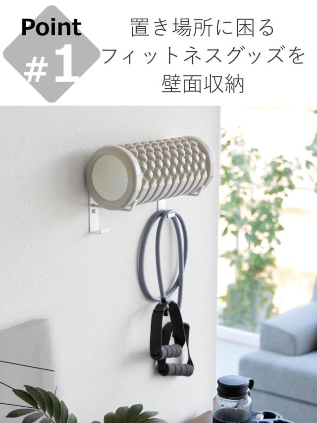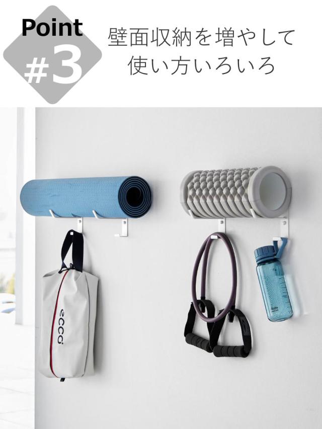 置き場所に困るヨガマットやフィットネスグッズを石こうボードピンで壁に収納できる、フック付きヨガマットハンガーです。壁に浮かせて収納できるので、お掃除も楽々です。フックが付いて収納力抜群です。