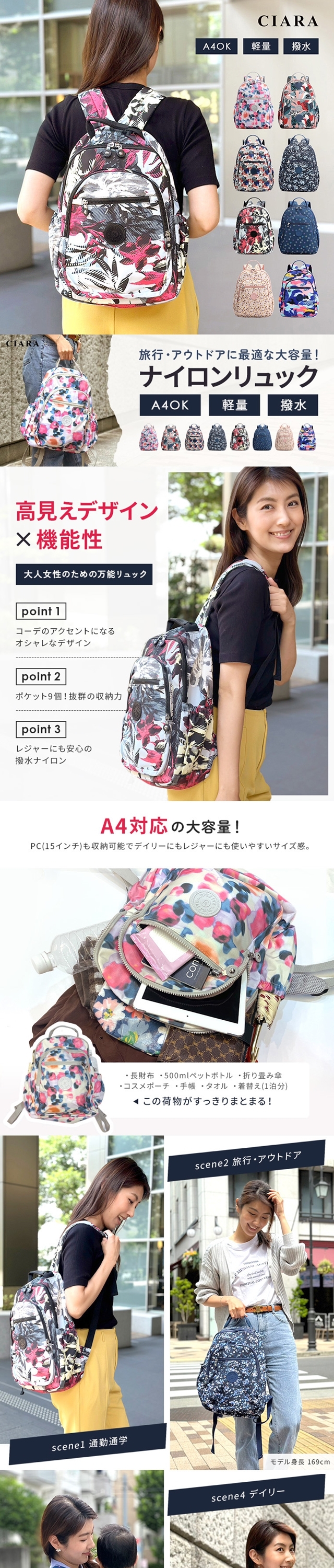 バッグ レディース リュック リュックサック バックパック スポーツリュック 大容量 a4 撥水 人気 上品 高見え ママ ナイロン ママバッグ マザーズバッグ ファスナー付き 多収納 軽い 軽量 収納 丈夫 小さめ 大人 大人女子 女性 たっぷり 使いやすい ポケット ファスナー 旅行 ビジネス デイリー 仕事 オフィス 通勤 通学 自転車通勤 タブレット PC 登山 山登り 遠足 実用的 普段使い 帰省 フェスバッグ 中学生 高校生 カジュアルバッグ 速乾 修学旅行 出張 トラベル 持ち歩き ハイキング 林間学校 子供 小学生 レジャー 女子 大学生 OL 会社員 20代 30代 40代 50代 60代 70代 80代 かわいい 可愛い おしゃれ きれいめ カジュアル シンプル バレンタインデー ホワイトデー お返し 敬老の日 母の日 花以外 クリスマス 彼女 誕生日 新生活 贈り物 福袋 プレゼント プチギフト セール お得 ポイント消化 送料無料 春 夏 秋 冬 CIARAポーチ雑貨屋 シアラ OEM 大量注文 ネスリーフ 2026