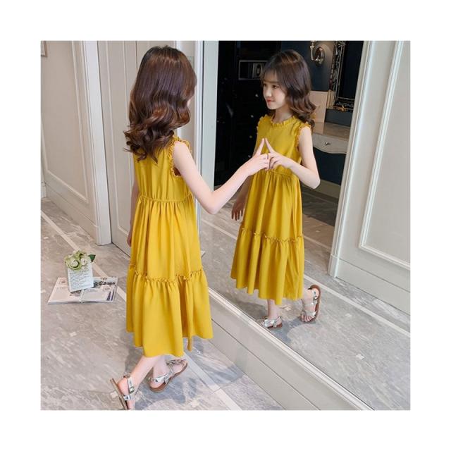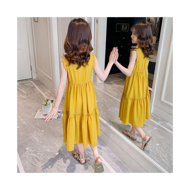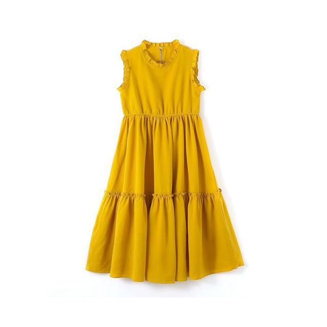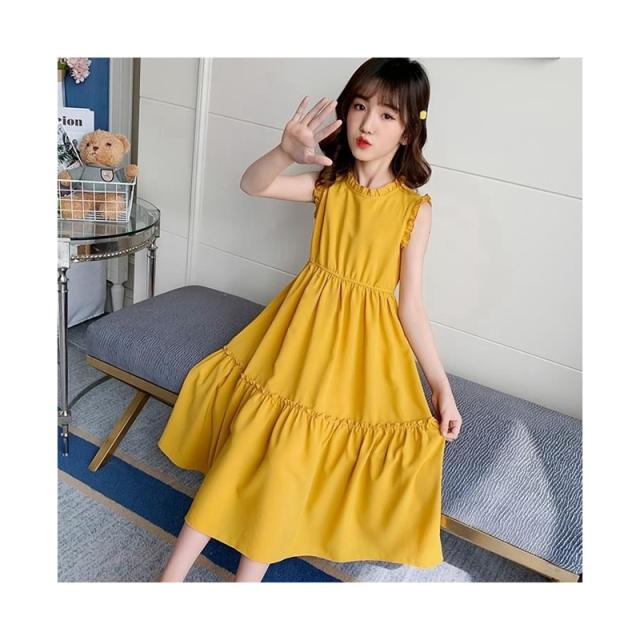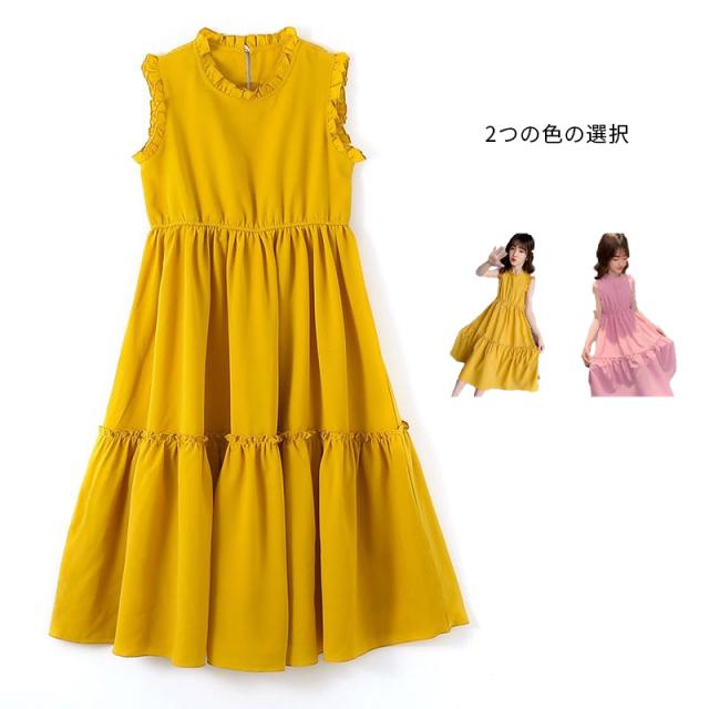 キッズ ワンピース 春夏 ノースリーブ おしゃれワンピース ロングワンピース フリルワンピース ピーチワンピース シフォンワンピース ロング丈 おしゃれ シフォン フリル 子供服 女の子 無地 シンプル カジュアル おしゃれ アウター 送料無料