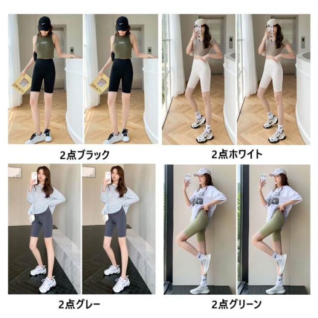 ヨガパンツ ヨガレギンス ショート丈 ハーフパンツ 2点セット タイツ レディース 桃尻 スポーツ タイト ハイウエスト 5分丈 吸汗速乾 スポーツレギンス ジョギング ヨガウェア レギンス パンツ フィットネス ホットパンツ ランニング スポーツウェア 夏 送料無料