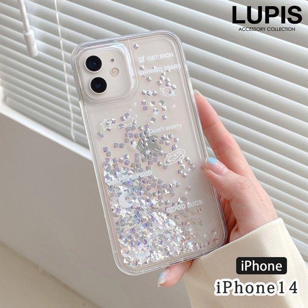 iPhoneケース iPhone14 キラキラ クリア 動く 流れる 液体 かわいい 爽やか オーロラ ストーン ホロ 宇宙 ギャラクシー LUPIS ルピス